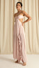 Vestido longo confeccionado em crepe leve com forro. Possui busto fixo à saia apenas por recorte frontal, deixando toda a região da cintura a mostra; decote coração com cordão embutido no centro do busto para franzir o decote e amarrar no pescoço; lastex franzido nas costas do top e da saia, para melhor ajuste ao corpo e fenda frontal na saia com aplicação de babadinhos que dá um charme especial à peça.