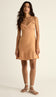 Vestido curto com forro, confeccionado em viscose com toque e aspecto de linho e leve elasticidade. Possui decote coração com pala dobrada e recortes que modelam o busto, alcinhas reguláveis, lastex nas costas para maior conforto, fechamento traseiro por zíper invisível, recortes vazados laterais na região da cintura e sutil babadinho franzido na barra.