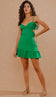 Vestido curto com forro, confeccionado em crepe de alfaiataria. Possui decote coração com pala dobrada e recortes que modelam o busto, alcinhas reguláveis, lastex nas costas para maior conforto, fechamento traseiro por zíper invisível, recortes vazados laterais na região da cintura e recorte com babado e franzidos na barra.