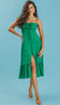 Vestido midi com forro confeccionado em poliviscose texturizado com aspecto de linho. Possui alças finas e reguláveis. Franzido no busto com tirinha para amarrar. Possui fechamento por botões esmaltados e fenda frontal. Lastex franzido nas costas.