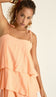 Vestido curto confeccionado em viscose com toque e aspecto de linho. Possui forro. Maxi babados em camadas. Fechamento por botão esmaltado. Possui tiras fininhas e bem delicadas pra você amarrar nos ombros. Um look perfeito pra curtir os dias e noites quentes de verão sem abrir mão do estilo!